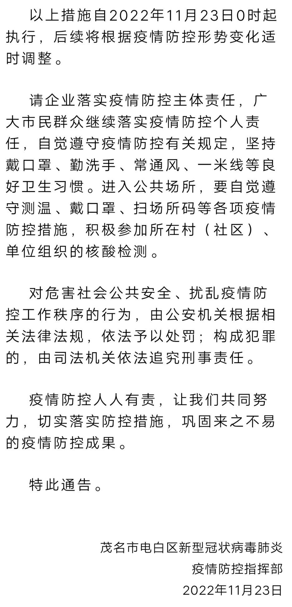 电白区关于11月7日对水东等6镇街开展核酸筛查的通告
