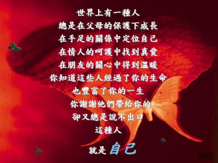 yingzi000 痛快地笑,痛快地哭,痛快地活着 注册 2005-07-11 消息 1,316 反馈评分 0 点数 61 2005-08-25 #6 很好,没种最爱自己的人的特征都有些出来 但好像中的来说才是4种 我想第五种是“妻儿”