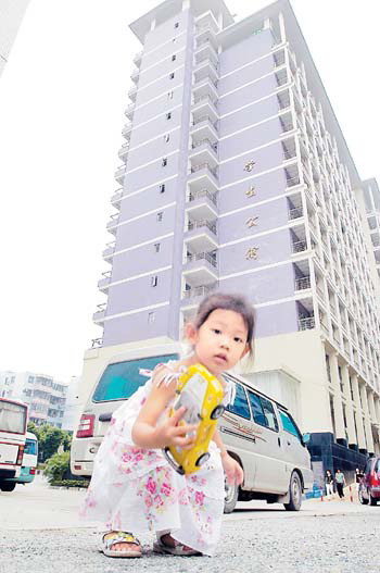 星海音乐学院的宿舍管理非常严格,男、女生都是分不同的电梯上楼,而且两部分的宿舍也是完全分隔开的。周笔畅的宿舍在10楼,那是一间四人的宿舍,有独立卫生间和小阳台,据介绍,这里每间房都有太阳能热水器和空调,住宿条件还是不错。