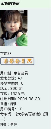 李东润 研究生 注册 2004-10-09 帖子 1,093 反馈评分 0 点数 61 2005-09-26 #65 我的........................... [attachmentid=45539] 附件 {1A19D92F-34CD-4AFB-A60C-69BC4E4A5A51}.jpg 13.4 KB · 查看: 905