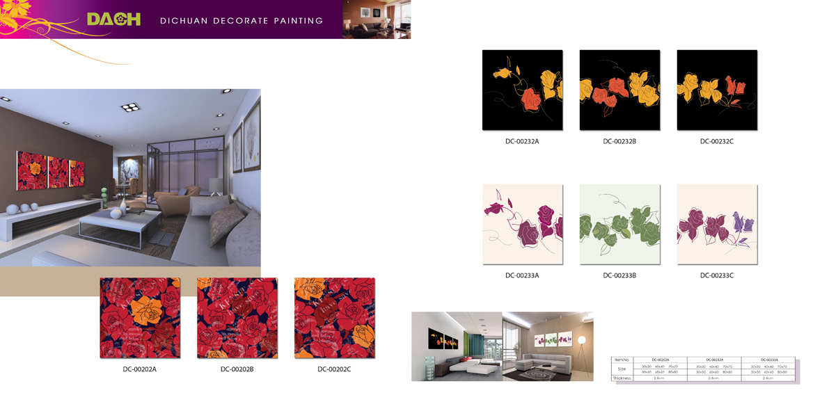 继承了传统装饰画的精心制作并结合当下先进的 制作工艺和时尚理念完美推出;