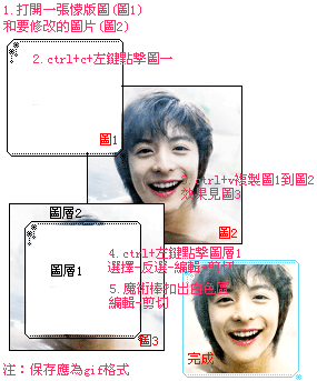 小宝ice 幼儿园 注册 2006-02-03 消息 5 反馈评分 0 点数 0 2006-02-03 #5 QUOTE(kennylee @ 2006年02月03日 Friday, 02:49 PM) 要是换了我的话我会双击图层,按确定,解锁之后按着Ctrl点击那张图层,然后选择反向,按Ctrl+del去掉白色部分,然后拉到你需要的图片上面 我这种做法很麻烦 [snapback]954147[/snapback] 这样我试过的~不是很好看的~图片在它外面的不好弄~ 像这样的图是怎么做的呢~ 附件 2005819154835531.gif 9.8 KB · 查看: 326