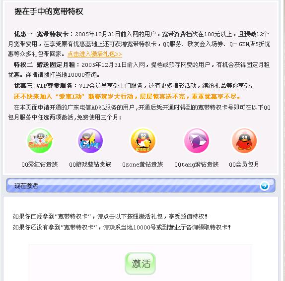 QUOTE(回忆回忆 @ 2006年02月05日 Sunday, 01:55 PM) 8知道怎麽弄特嗫 啥意思? [snapback]957541[/snapback] 那就是说宽带资费档次在100元以上,且预缴12个月宽带费用,在享受原有优惠基础上还可获增宽带特权卡