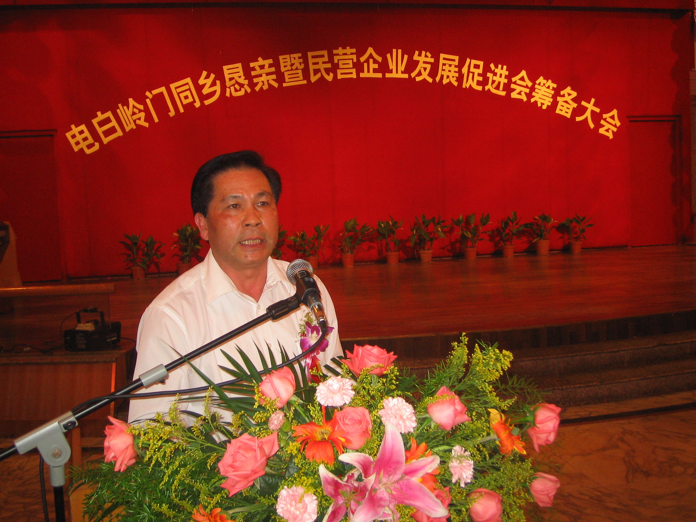 今天下午3点,电白岭门民营企业促进会在深圳银湖召开大会,宣告胜利成立.茂名市\电白县\岭门镇领导干部均来参加.广州\深圳\东莞等地的岭门籍商界\政界领袖人物近四百人参加了盛会.