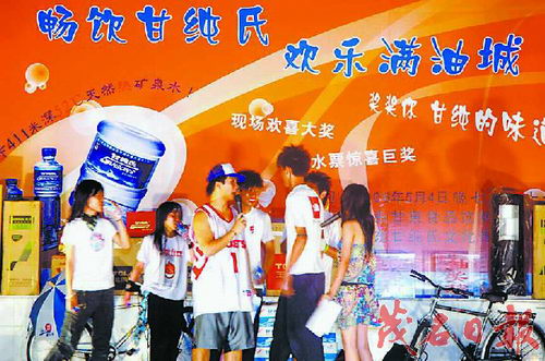 昨晚,广东甘泉食品饮料有限公司在富丽广场举办现场抽奖晚会,节目特邀MD街舞队现场精彩演出,以回报长期购买饮用甘纯氏矿泉水的客户。本报记者 丘立贺 摄