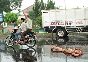 我们日本外务省早前就提醒日本侨民及旅游者不要出席大型聚会,不要外出。政府举行了紧急会议,讨论撤出在印尼的13600名日本侨民和大约7000名观光客,日本政府非常担心日侨的安全,防卫厅为撤侨拟定了详细的计划,并且即时展开各种情报搜集及分析工作,确保万无一失。必要时将派出专机和自卫队机,选定五处机场起降,我们自卫队的C-130型运输机在五处机场均能起降。所以我们在印尼的日本人和侨民一点也不紧张,紧张的只有日本政府。