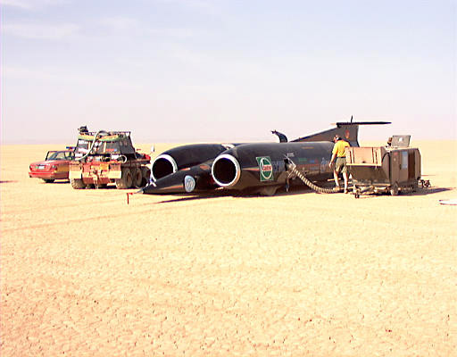 地球上最快的 ThrustSSC O速 1281 km/h, 768 mph 或是音速的1.015倍有e於保r捷或法拉利等跑, @使用的是商ㄍㄓ秒器 Lockheed Martin F-104痿YC用的u射引擎, 提供39,000匹R力