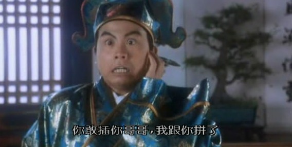 (说完,瞎子吐血而“死”,等至尊宝打算逃命时)至尊宝:喂,瞎子,你不是死了吗?瞎子:我们刚刚是装死的!至尊宝:我Kao!I服了You!