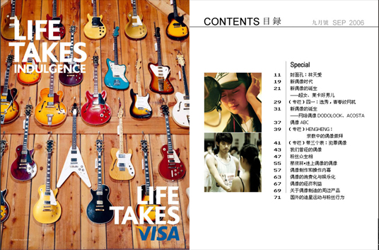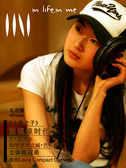 「IN」是让更多人认识你的可能性。在享受它快捷且方便的娱乐资讯的同时,亦呈现你最真实的自我,表达更鲜明的个性,令你生命沿途风景更精彩。 「In life, in me」,这一切不是错觉,其实就是你自己。 本期「IN」杂志将为大家介绍 “超女”、“好男”这样的选秀节目中新偶像诞生的过程和操作内幕,大量的独家照片,当然还少不了我们的“封面孔”,这次我们带来原创歌手林天爱录音棚精彩写真。