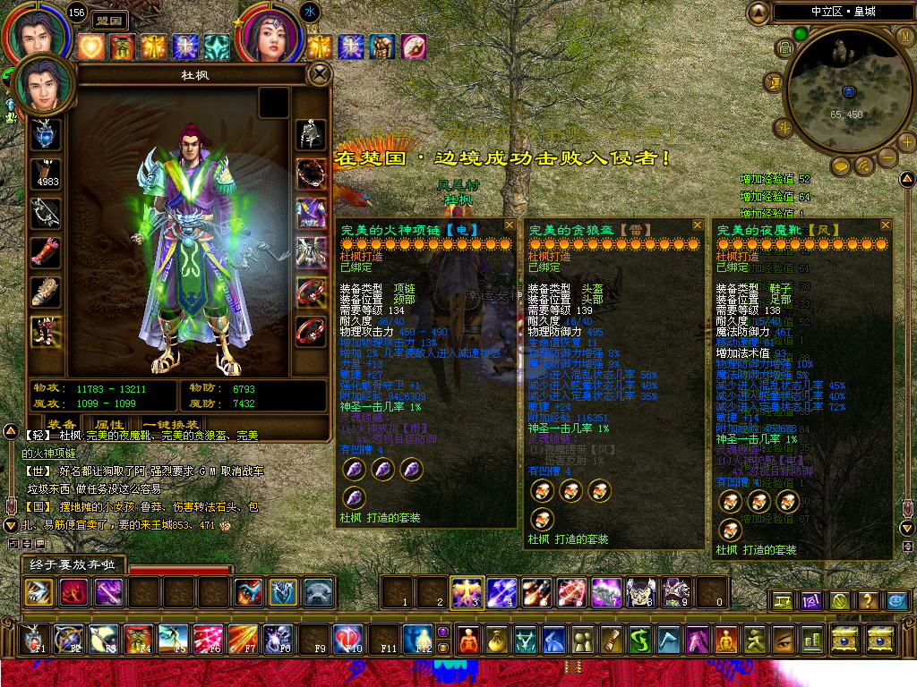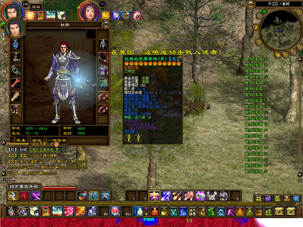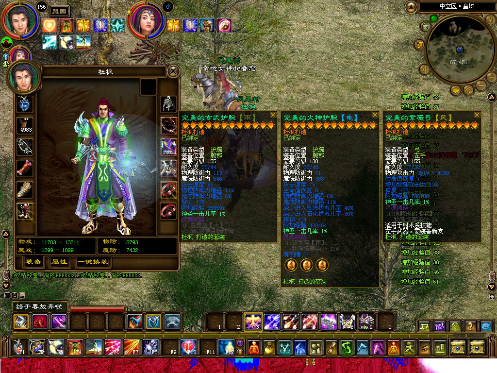 另外送:专门练级的极品装备(装有大量自动回血回蓝的石头和双倍经验的石头),和其它角色的极品套装!