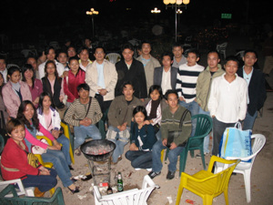 QUOTE(四中乐叔 @ 2006年12月10日 Sunday, 01:03 PM) 深圳电白老乡去蛇口海上世界烧烤活动图片 时间:12月9日 (周六晚上7:30-凌晨3:00) 地点:蛇口海上世界烧烤场 活动内容:自助烧烤/聊天(凌晨时分烧烤完毕,在附近找房间打卜克/麻将) 此次活动有70几位坛友老乡参加,同乡会南山分的李会长、郑会长等蛇口的老乡及家属共约有100多人参加,部分来自东莞、惠州、广州等地,凌晨约3点结束后,剩下30多人他们回到工业区招待所打扑克聊天等。 这是结束时的合影。 [snapback]1585652[/snapback]