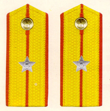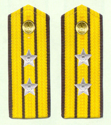 解放军陆军军衔――将官 (1):陆军上将为我军现行军衔制中陆军最高军衔、军衔条例规定,中央军委副主席、军委委员、总参谋长、总政治部主任一律授予陆军上 将军衔。陆军上将还是正大军区职军官的主要军衔。正大军区职包括副总参谋长、总政治部副主任、总后勤部部长、政委、大军区司令员 、政委等。注:黄的为肩章,绿的为软肩章