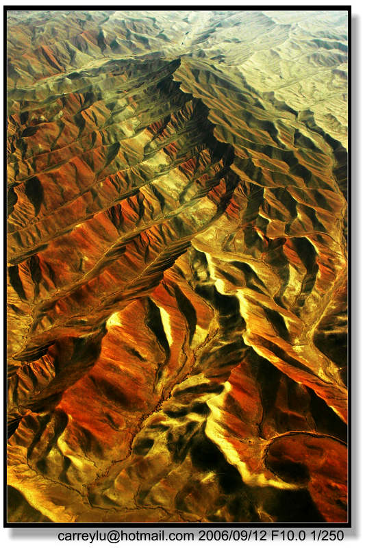 大自然的鬼斧神工让人称奇。这是从深圳飞往乌鲁木齐途中所拍到的画面。