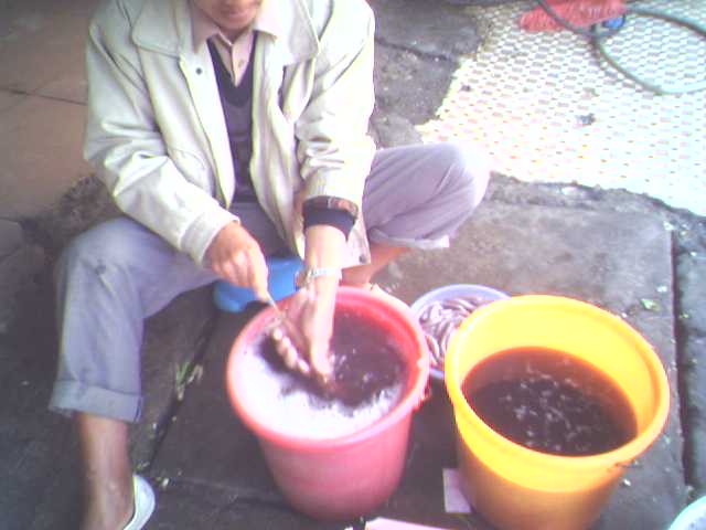 翻沙虫也是讲究技巧。翻沙虫时,用一盆水,左手把沙虫弯着,放在水中。右手拿一根园竹枝,插入沙虫,竹枝在中间破肚而出,然后快速抽出竹根,再翻另一段。翻沙虫全凭感觉,双手动作默契配合,动作越快,沙虫翻得越干净。慢者,把沙虫肠子弄破,沙虫肉粘着沙粘,不能吃。