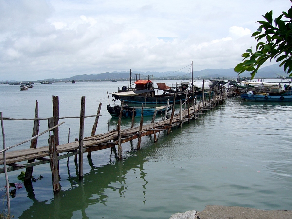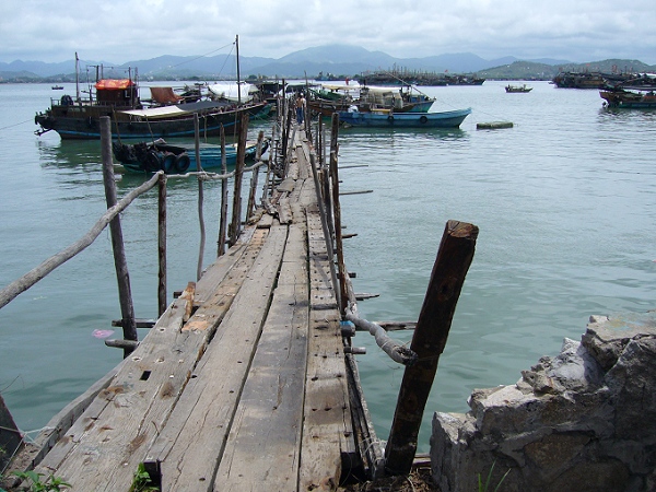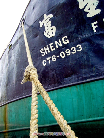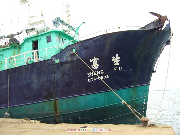 码头上泊着一艘台湾渔船
