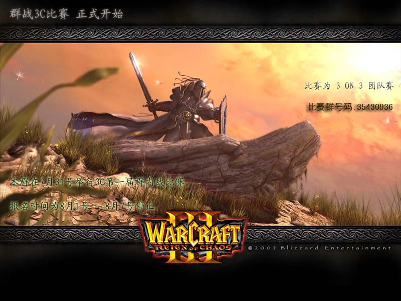 为了提高新手的技术,高手对对手寻求的渴望,本群在7月31号举行3C第一届群内战比赛。报名时间为8月1号 - 8月7号停止.群内大多人均已报名,可能在进行中会有一系列的冲突和混乱,希望以本群利益为主,尽力打好每一场比赛,让自己在比赛中进步,这才是最终的目的!比赛第二,锻炼第一!保持良好的价值观和态度面对对手....