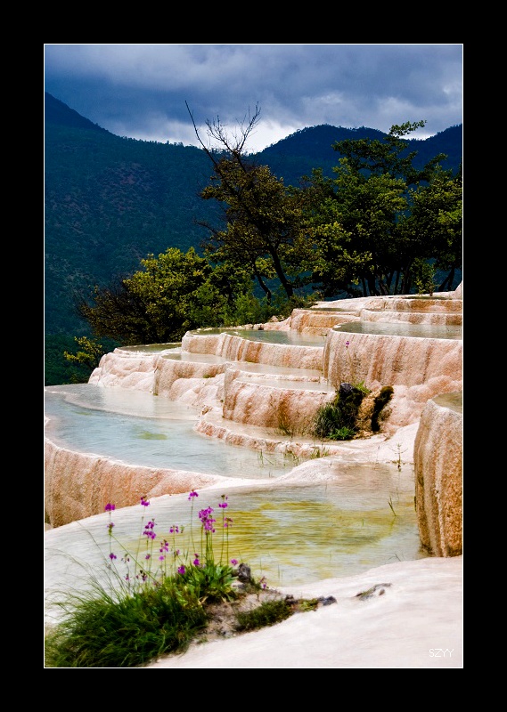 北方郎开车,今天一大早就下雨,问了酒店服务台,服务员说这两天天气都不好,担心连阴雨引起塌方,不敢等待,也许只能赶路了。先到中石油加油站加满30升的备用油桶,防备路上遇到麻烦。很快路过纳帕海,雨中的纳帕海静谧安详。天在下雨,无法拍摄,继续赶路,这时接到主美的问候短信,给他回了短信,介绍了一下我们的情况。