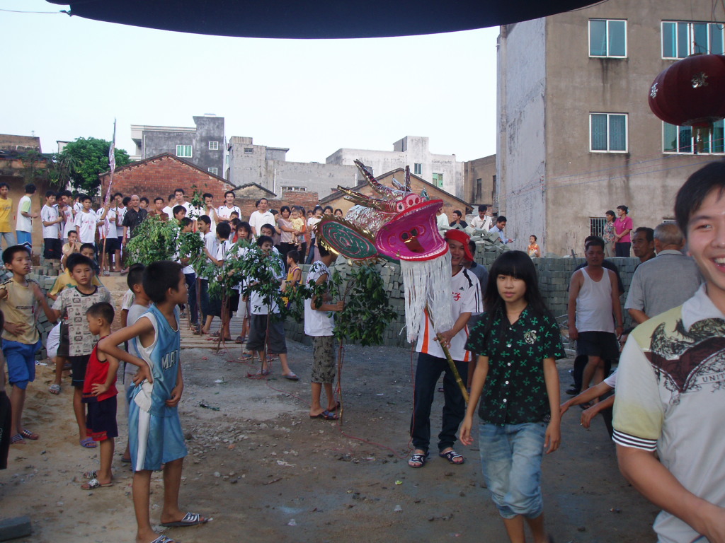 “树仔龙”经过十几载.今天在热心的村民们重新组织起来.发扬本土民间传统文化确实难得. 本记者在现场都感到节日的气氛.场面热闹非凡.不论老者还是小孩个个都笑口常开. 村长高兴的对我们说.`哈哈.太高兴了都不知道累`.是呀!.