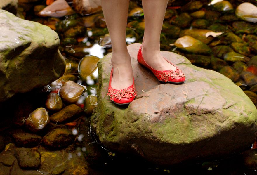 那妞穿着红鞋不见人只见脚`真的很像鬼啊``
