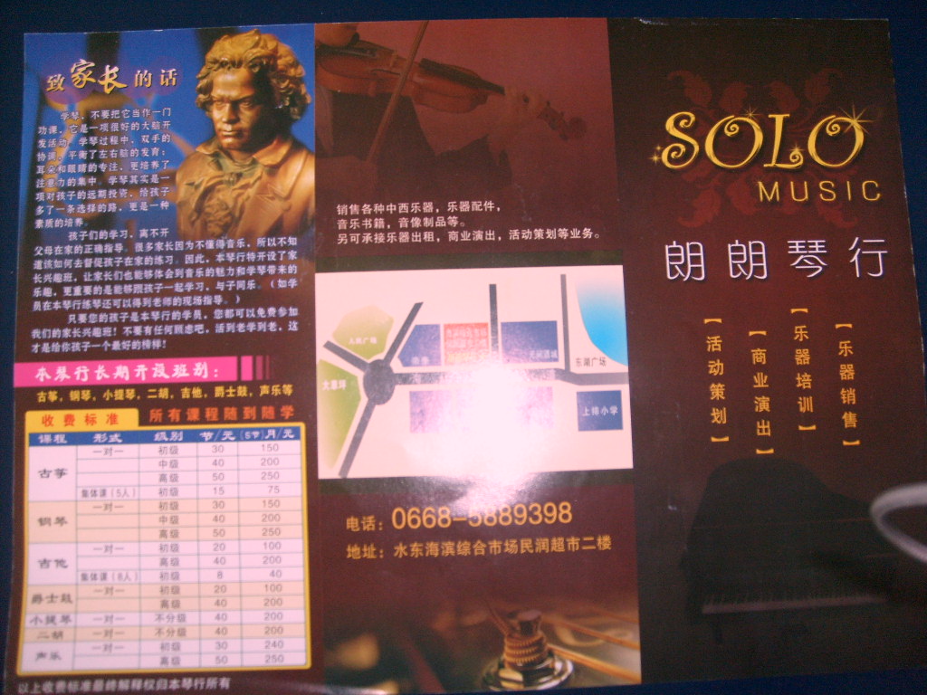 和jackie同志只有一面之缘,他开张也没有拿酒贿赂我。觉得他是个对本土的流行文化传播不遗余力地做贡献的好青年,也是论坛热心人。所以帮他卖卖广告。年轻人学学琴总比无聊过日子好。