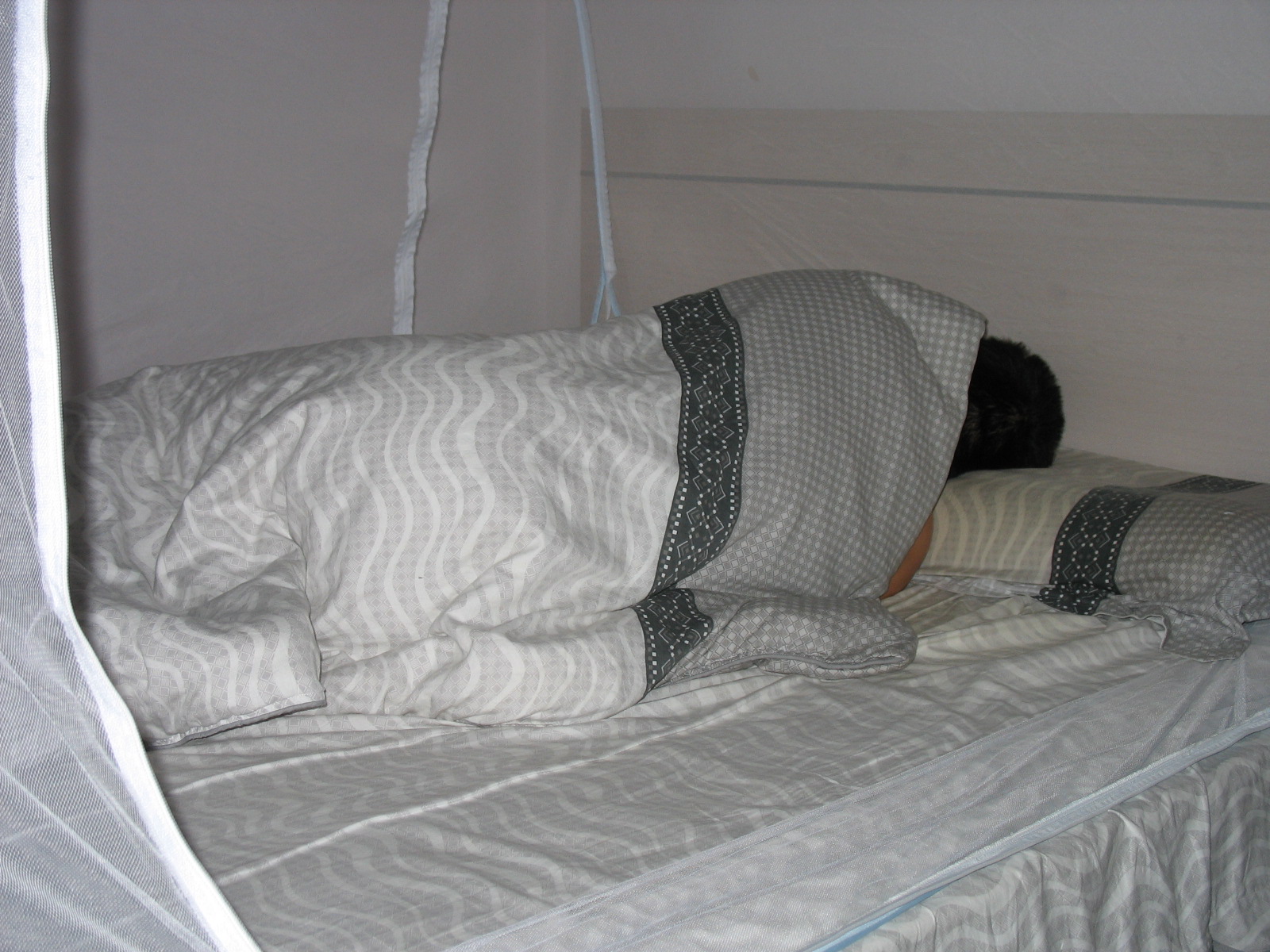 我正在他的房间,他还在睡觉。