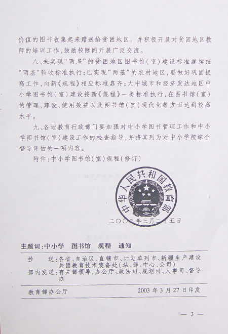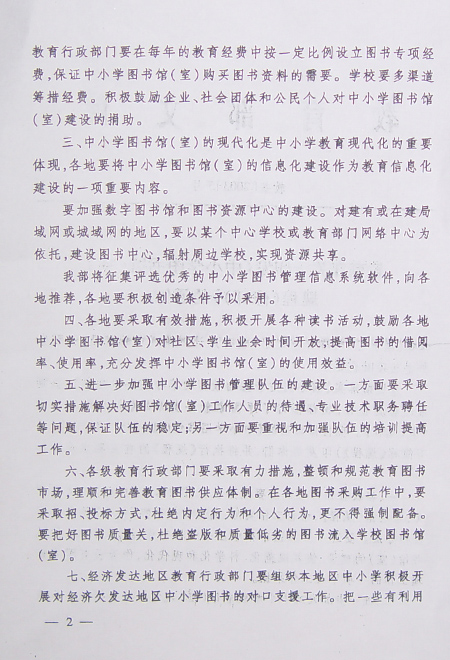 教育部关于印发《中小学图书馆(室)规程(修订)》的通知