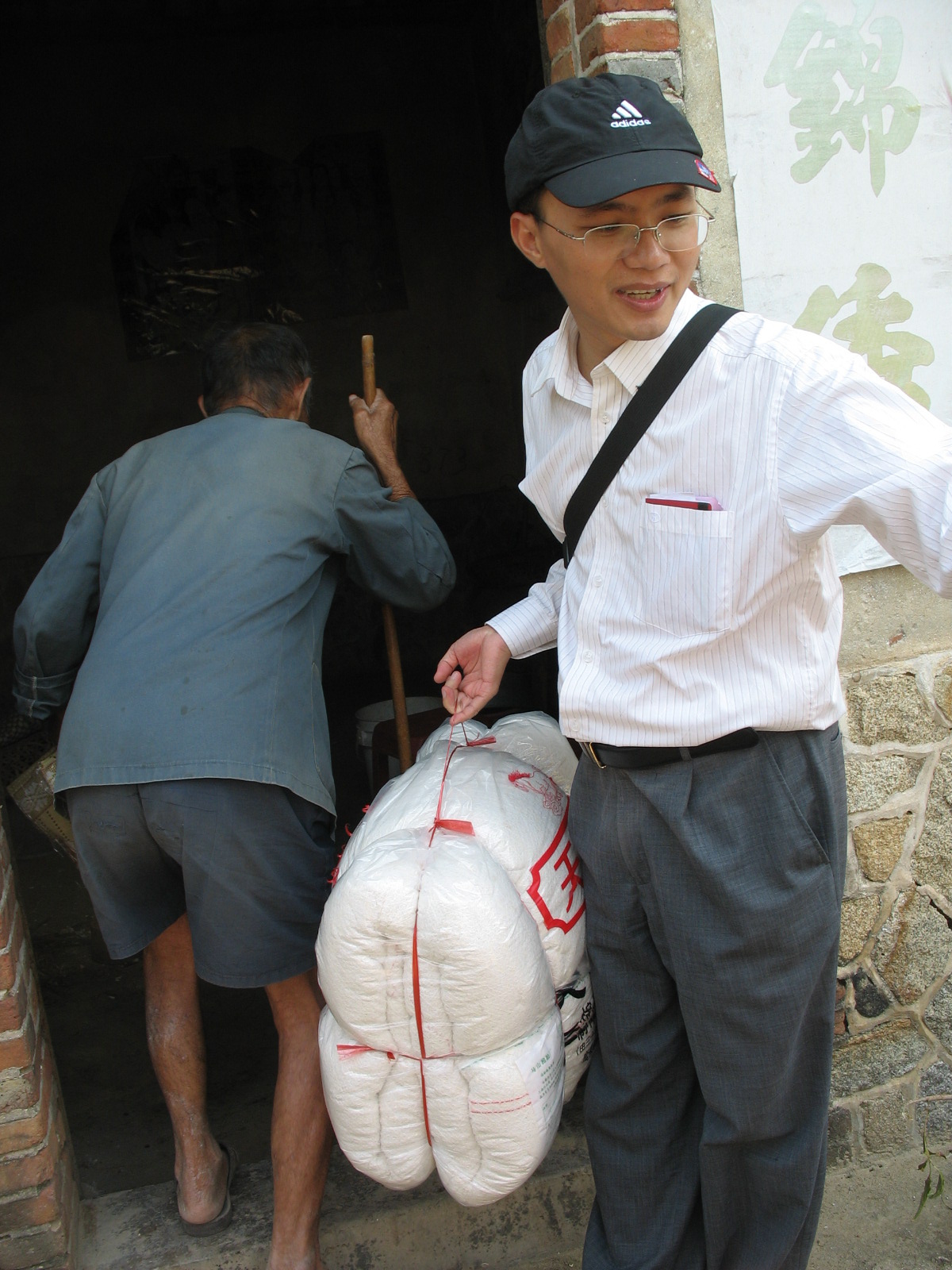 这是一个孤寡老人的家,我们到时他已外出,由邻居代领!