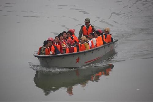 5月16日,某舟桥部队利用冲锋舟转移四川汶川县的受灾群众。