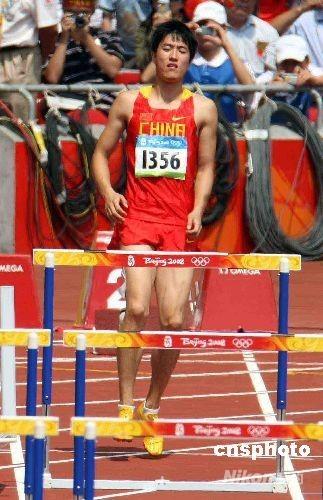 北京奥运会田径男子110米栏第一轮比赛,8月18日上午在北京奥林匹克公园内的国家体育场举行,被十几亿人关注的刘翔因伤不得不退出比赛。 中新社发 任晨鸣 摄