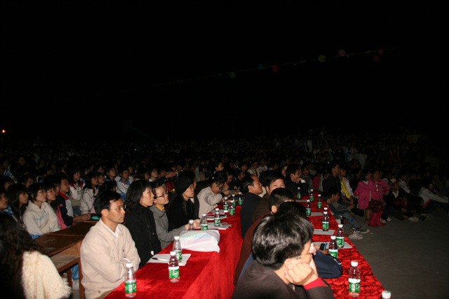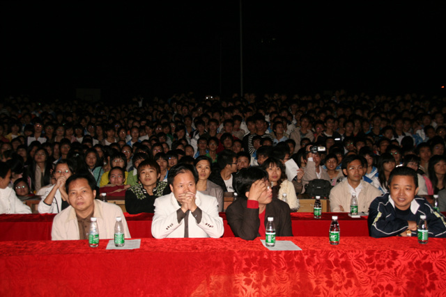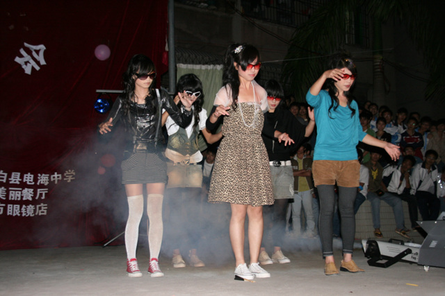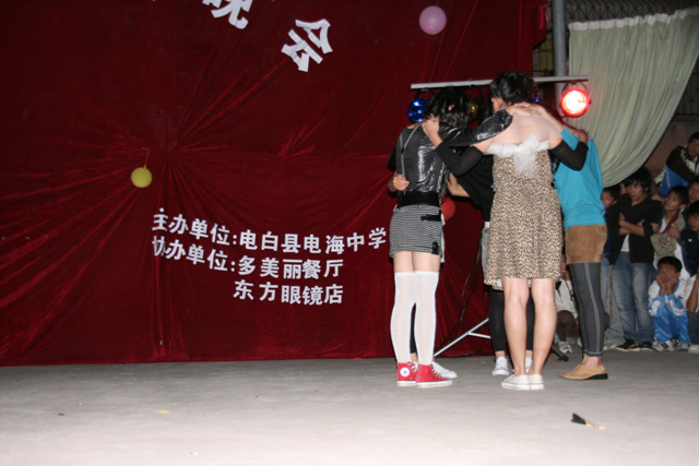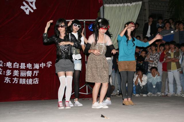 听说这一次晚会的活动资金是由电海中学学生会拉的攒助,攒助商有"多美丽"、“东方眼镜店”等,的确很不错。