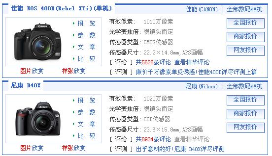 byronroy . 荣誉会员 注册 2005-08-17 消息 70,153 反馈评分 356 点数 191 2008-01-09 #1 http://www.pconline.com.cn/digital/dc/ping.../986756_15.html 请各位赐教! [attachmentid=158101] 对比表: [attachmentid=158103] 附件 fyi.jpg 46.3 KB · 查看: 537 D40X与EOS400D参数对比.doc D40X与EOS400D参数对比.doc 75 KB · 查看: 563
