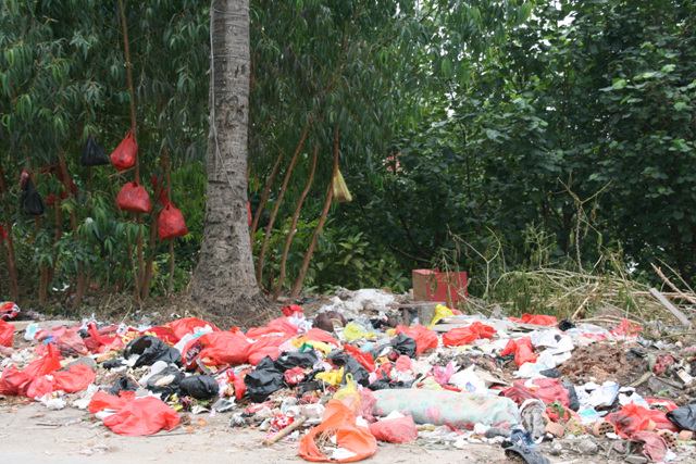 不知树仔圩的环卫工作是否归镇政府直管,丢人.综合厂前,每年篮球赛的主办会场处有此杰作,最重要的垃圾处理场划归给煎饼忠全权管理,令闻名全电的煎饼,再添一味.其实这也只是冰山一角.