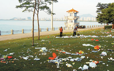 文化广场的垃圾,就变成"文化垃圾'了!