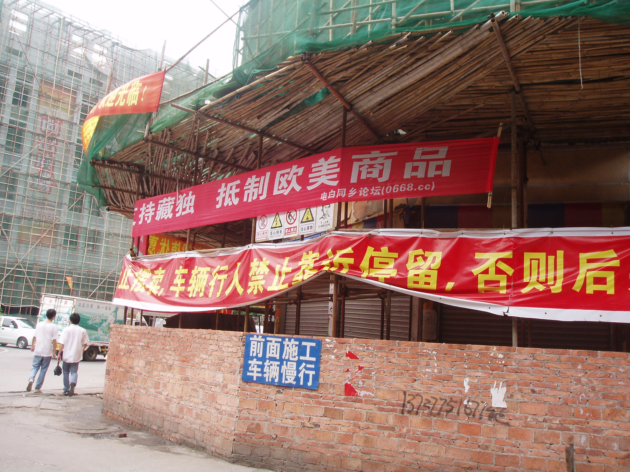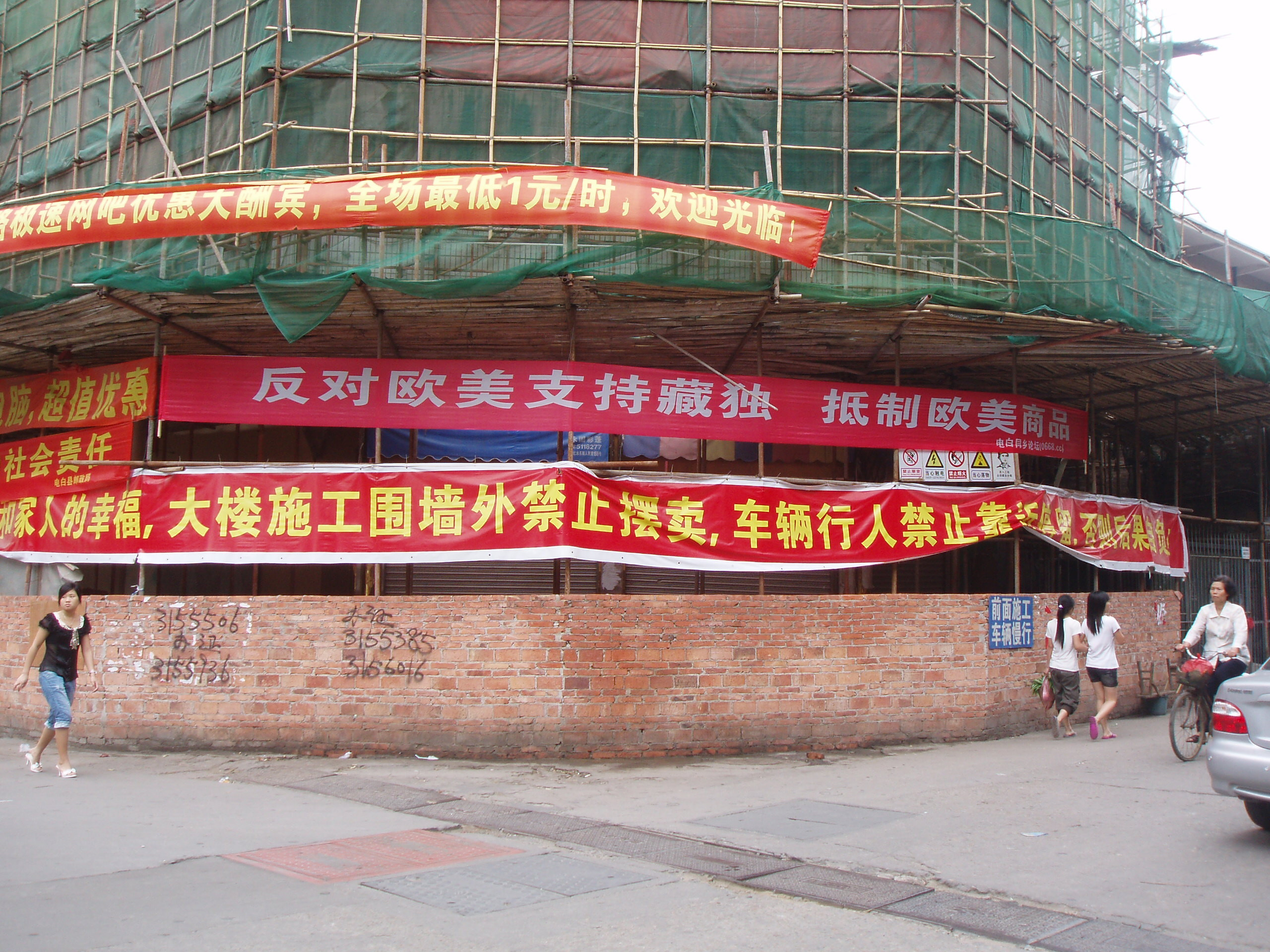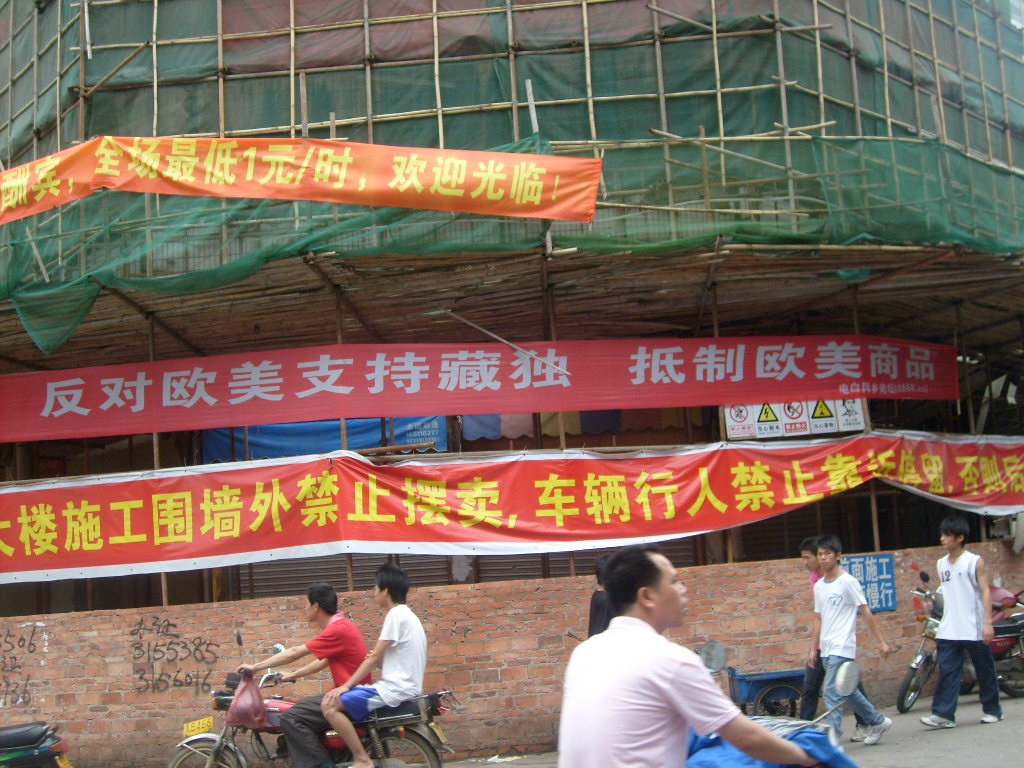 标语为“反对欧美支持藏独,抵制欧美商品”