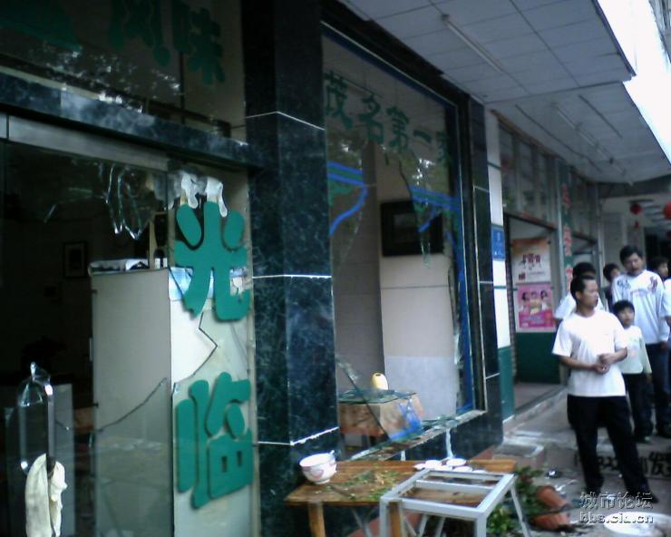 至下午4时许,警方将部分肇事者控制好并带离现场。据茂石化普外科的医生介绍,被打的小李可能脾挫裂伤,头部被踢打多脚,需做CT和B超检查,但生命体征暂时平稳。被砸面馆有关事宜警方也正在调查处理中。