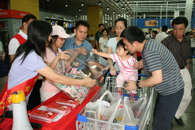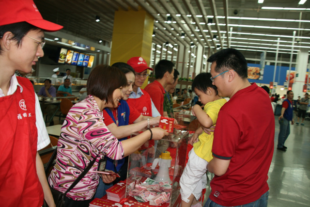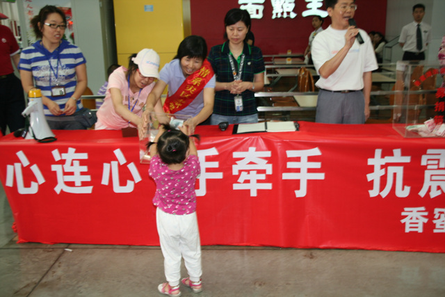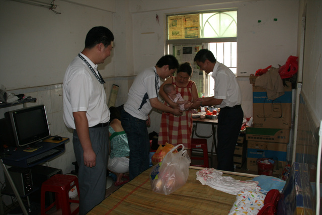5月26日,看望从四川地震灾区来的同事的2个月大的小孩及家人,同事捐赠几千元从四川成都飞来的机票,送来奶粉、水果等慰问。