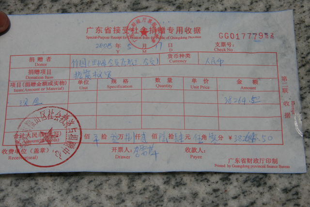我也尽了一点力,5月15日和社区一起搞的募捐。