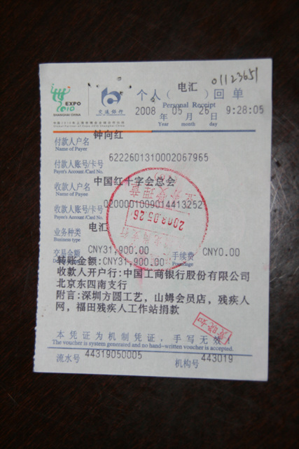 呵呵。今天党费我也捐了。今天捐了1070元。加起来有一千五百多元了。尽点心意呀。但今天看到关于学校豆腐渣工程的报道,真的是又伤心又痛恨。黑了心的人,天洙地灭呀!