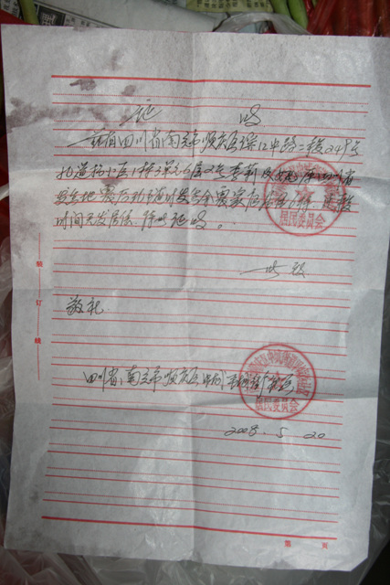 为了我们的党,为了我们的人民,为了四川人民能尽早重建家园……