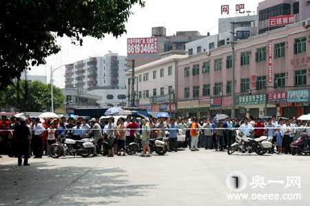 松岗街道松环路随后被大批全副武装民警封锁,不少民警身穿防弹衣、手持微型冲锋枪。联合专案组民警紧急组织疏散群众,同时通过对话稳定“阿文”情绪。