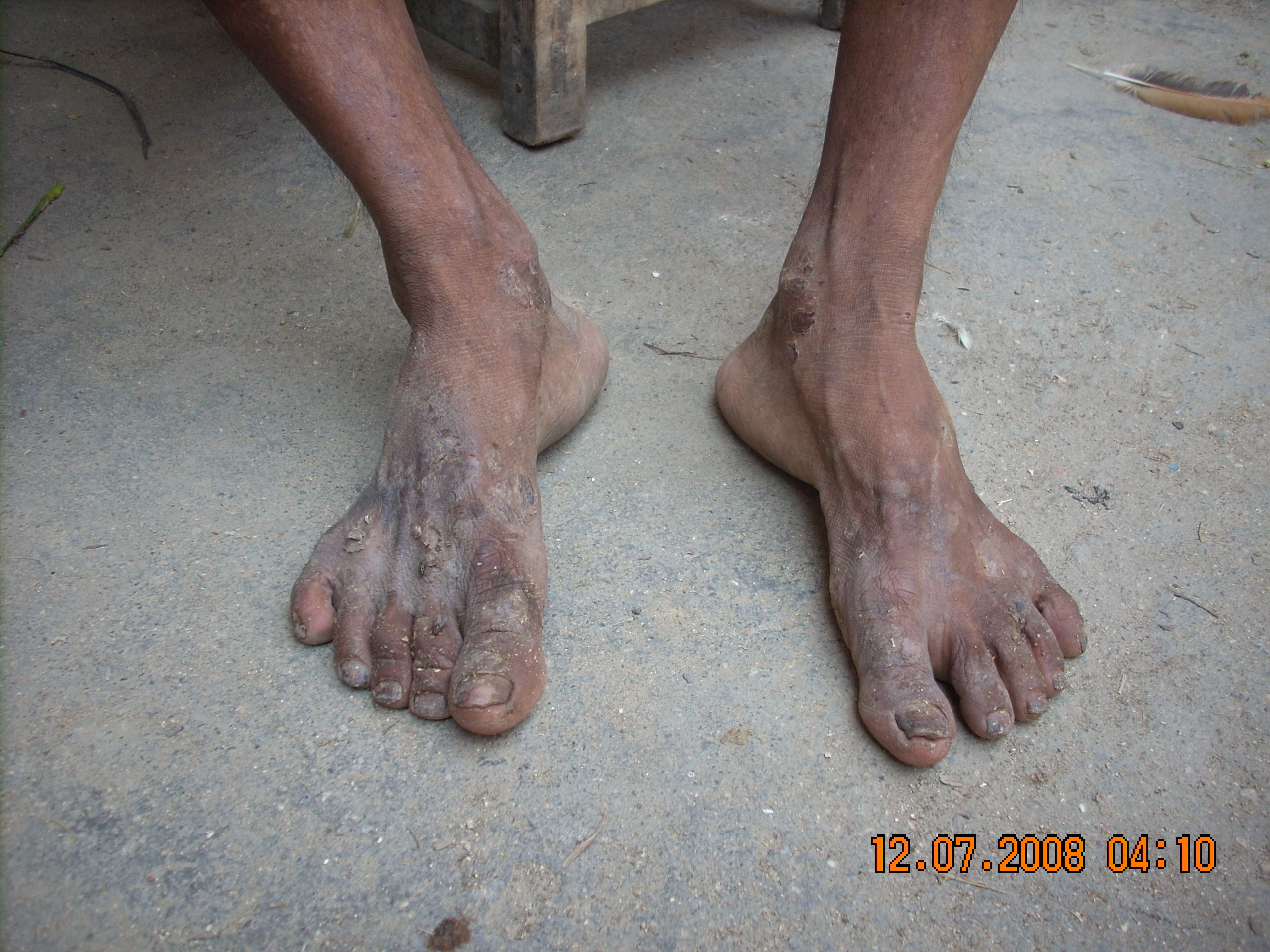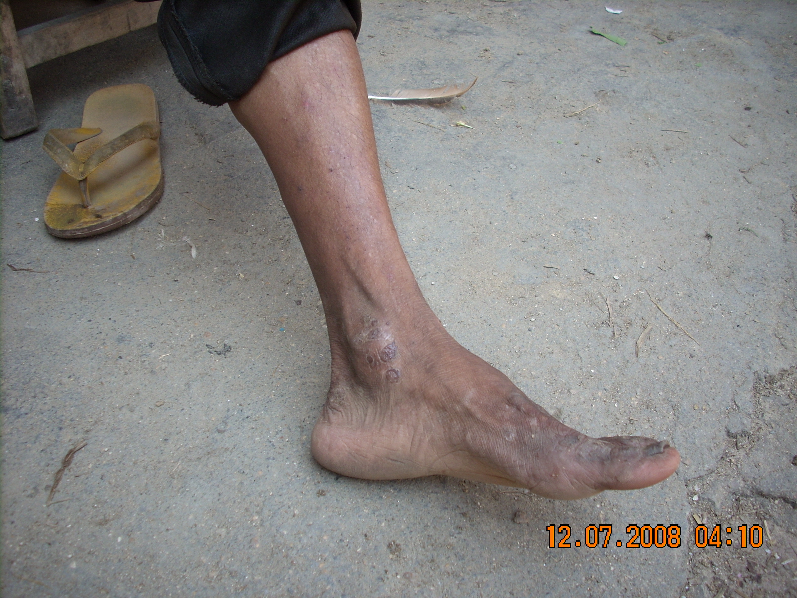 [attachmentid=188645]这个50多岁的人叫蔡阿田,是排塘村人,据他说,他的脚一碰到从"新塘"里的污水就会发烂.