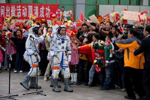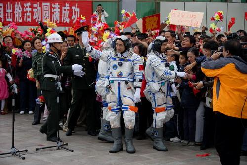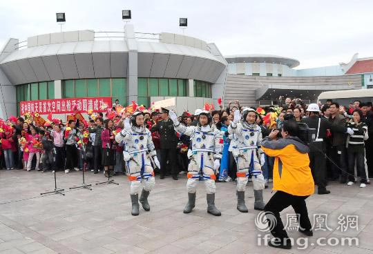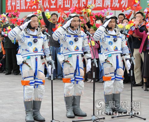 翟志刚、刘伯明、景海鹏同志你们好,神州七号飞船就是按原定计划发射了。你们即将出征,执行我国第三次载人航天飞行的任务,在这里我首先代表党中央、国务院、中央军委,也代表全国各族人民来为你们壮行,预祝你们成功!