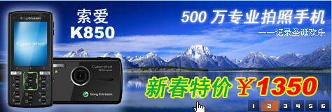智能0668淘宝店新春特价手机推荐:索爱K850 只要1350元
