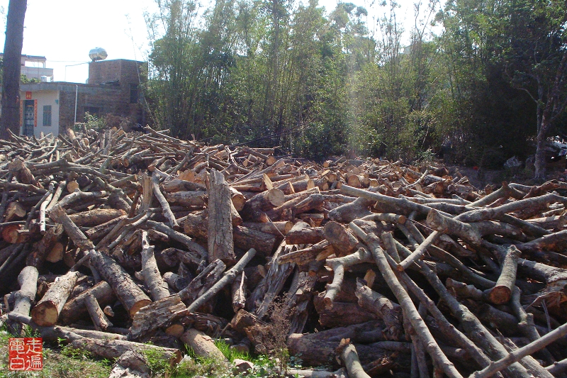 观珠是林区,沿途看到很多这样的堆放着的木材。