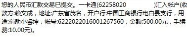 广 广州编辑 学前班 注册 2009-03-03 消息 34 反馈评分 0 点数 0 2009-03-10 #196 我一在东莞工作的同学今天汇了500元!感谢他! 大家继续努力! 附件 卫东捐款.jpg 10.5 KB · 查看: 492