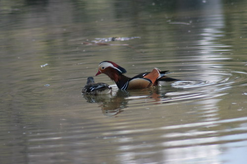 2009.03.14上午10:25时,小枪打鸟,无意中打到这两只鸳鸯戏水……,意外收获!仅供欣赏。