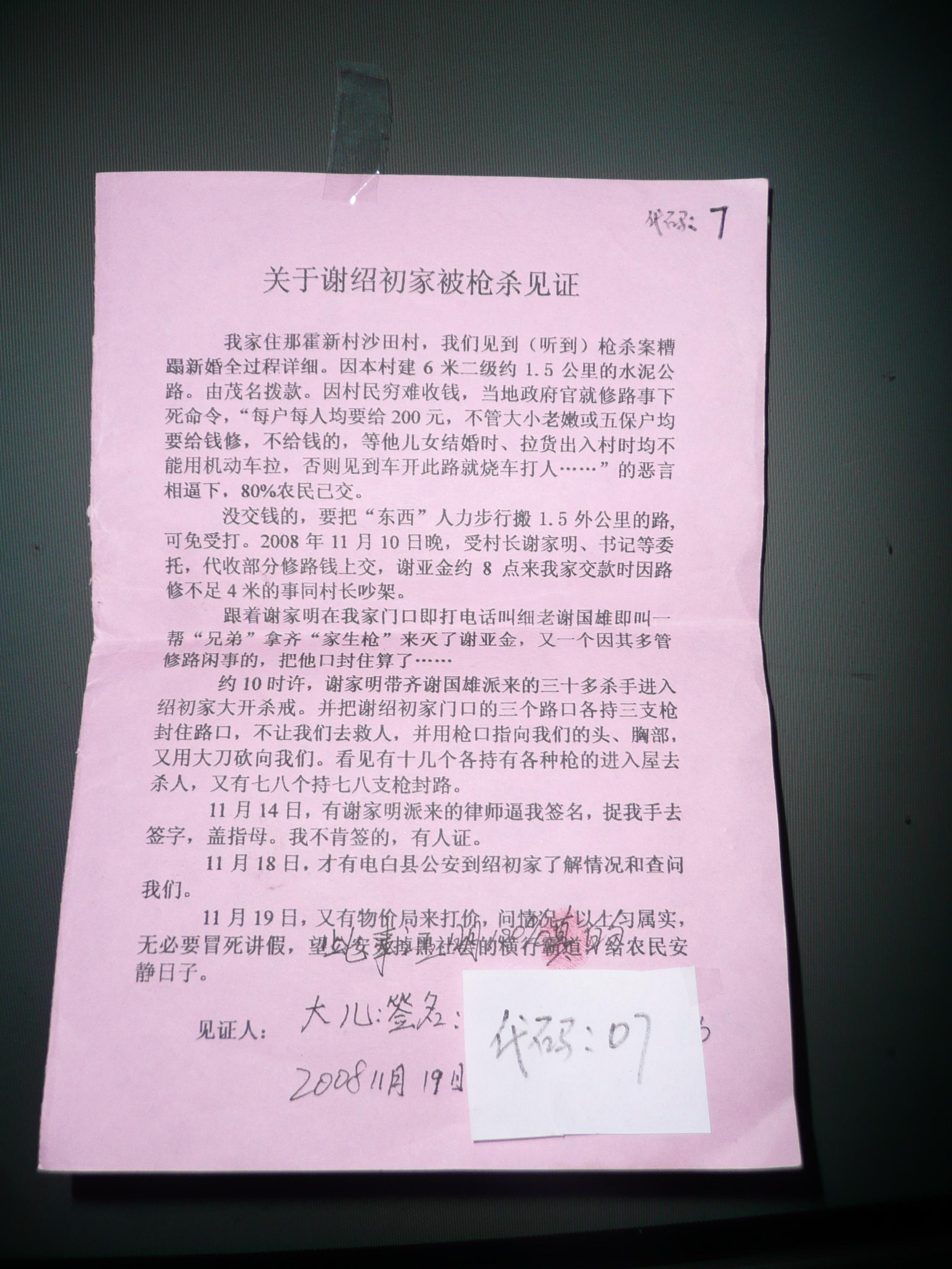 又无奈中受害者再一次请上级机关、法院、检察院、省、中央、网民、律师等支持核实冤情,为民、为谢家申冤。把此事反映盼望网上正义及正义新闻媒体高层政府再次为受害人申冤,多谢。