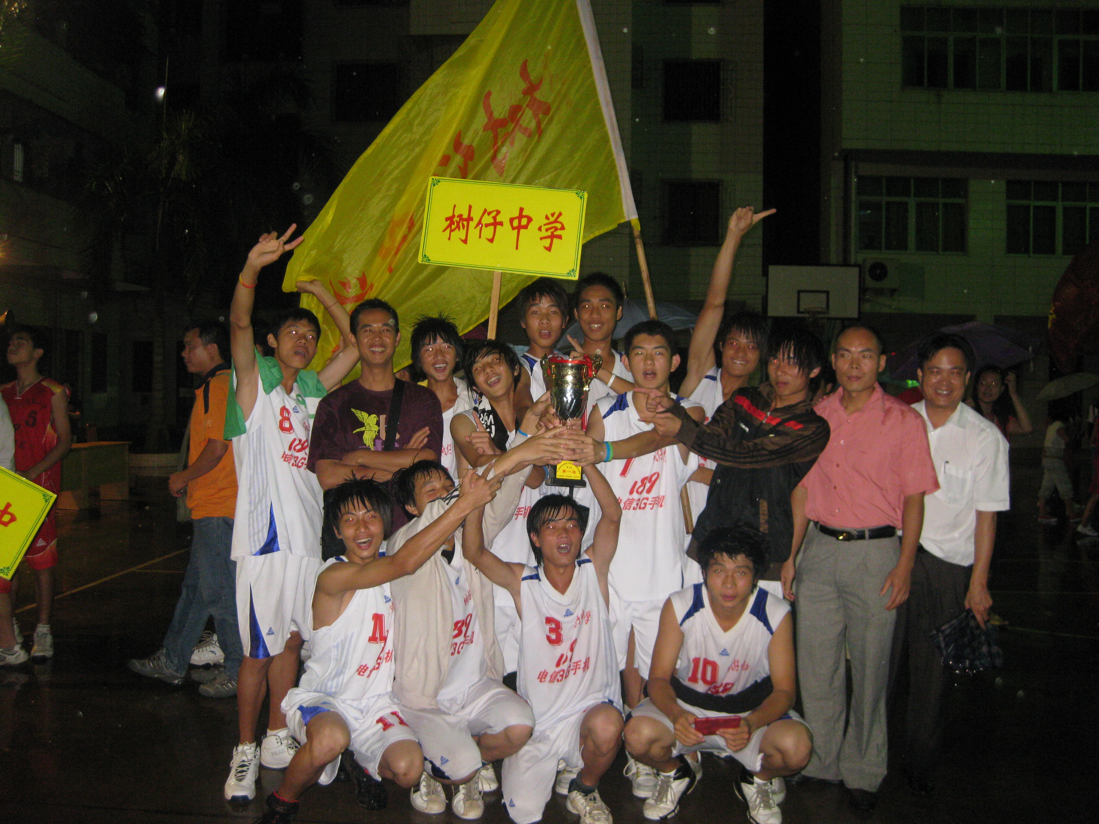 树仔中学是个多么强的队伍, 打出惊人的战绩... 10战10胜,从未输过一场, 惊动全电白中学生篮球界 打得那些篮球队心服口服, 听说县城的篮球队很厉害, 原来被树仔中学不堪一击, 是树仔人的都顶一下.....