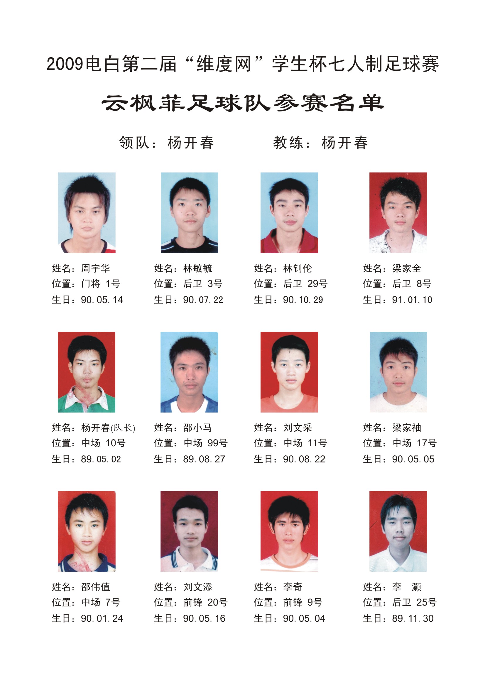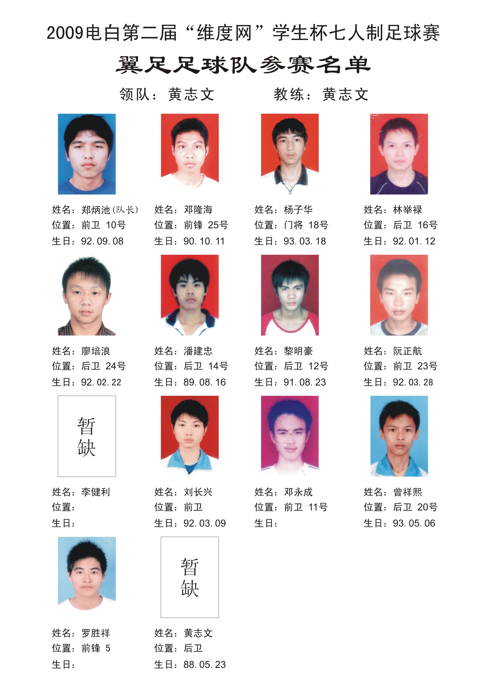2009电白第二届“维度网”学生杯七人足球赛 参赛球队名单 (3人在浏览)
