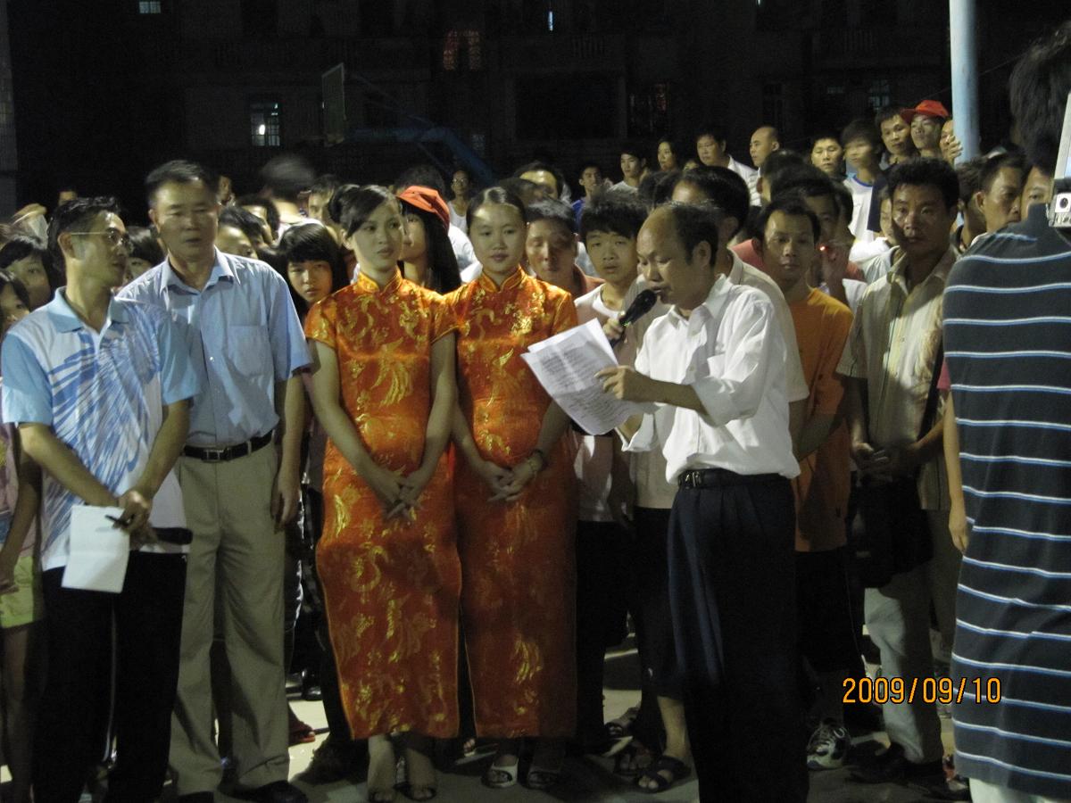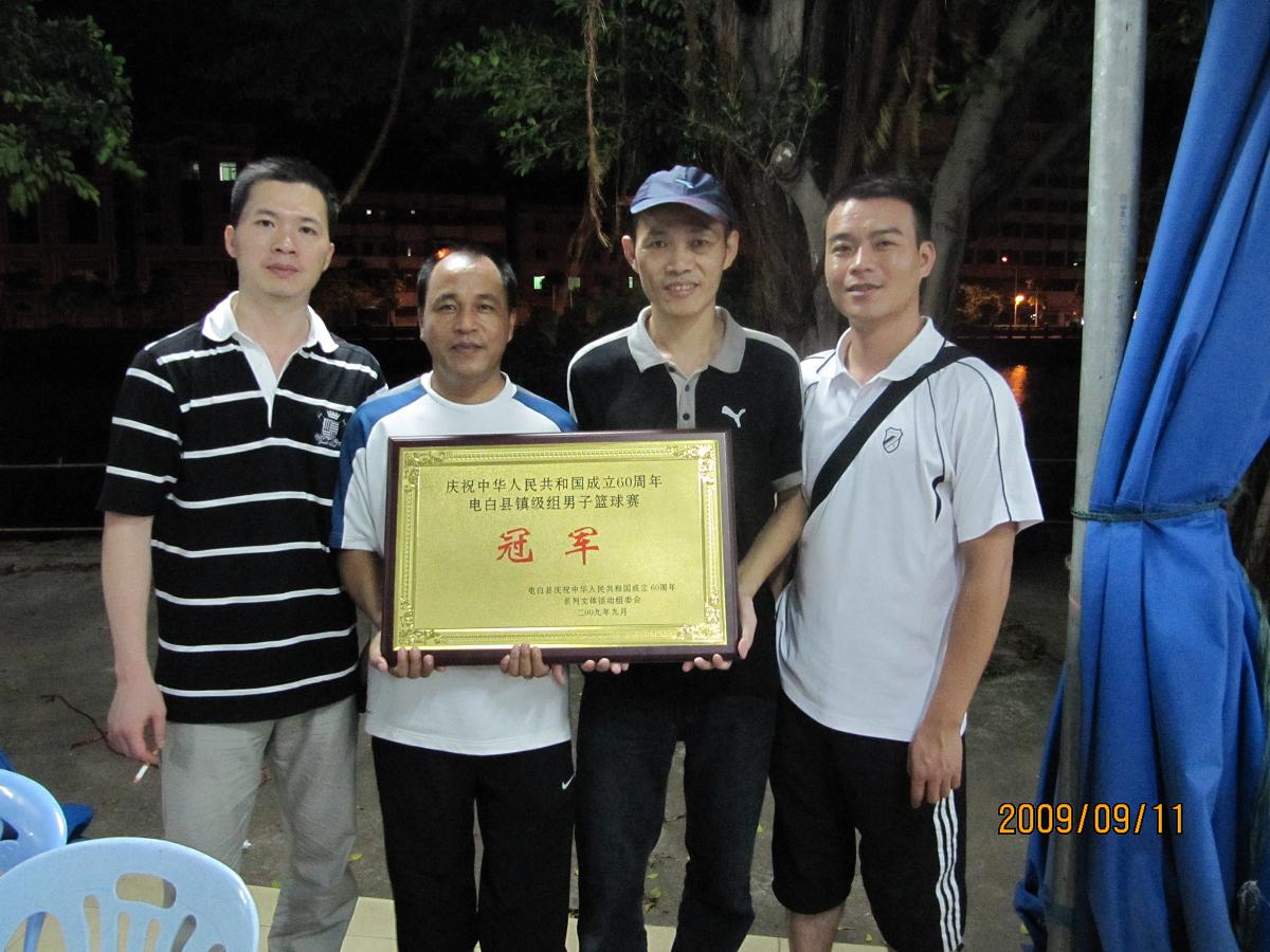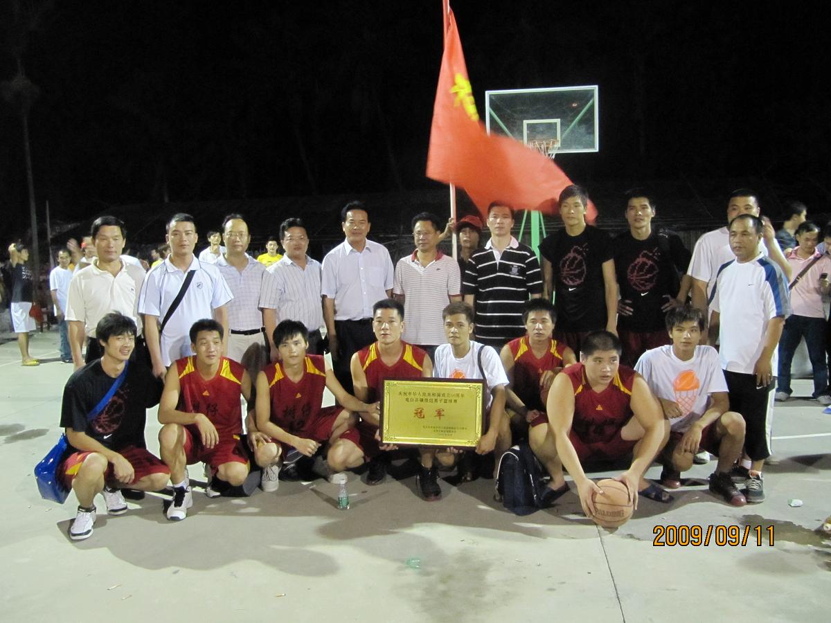 九六年树仔篮球队主力队员之一的陈伟强,为树仔镇第一次夺得全县篮球冠军立下汗马功劳。作为一个生意人,他非常的忙碌,在百忙之中亲自回来带队,并负责代表团的部分经费开支,为今次夺冠做出了重大的贡献!当晚,他唱了一首经典的{五星红旗},他说:现在我的心情非常激动,藉此国庆六十周年,树仔篮球协会成立十周年之际,树仔篮球队在大家的共同努力、顽强拼搏下,不畏强手、越战越勇、时隔十三年后,再次夺得了全县篮球冠军,为树仔的篮球事业谱写了新的一页。他说:今晚在这里要感谢的人太多太多了,衷心感谢全体运动员的团队精神,感谢社会各界人士的大力支持,感谢树仔各村球迷的积极参与和呐喊加油!特别是有几位运动员的体育精神很值得大家的学习,让这种精神继续发扬光大。。。。。。。。。感谢还提到了内园村、登楼、山美、海丰、树仔圩、等村的大力支持、也提到了镇党委、镇政府的高度重视、镇领导几乎每场到现场为健儿们打气助威,海景湾大酒店、环城酒店的精心安排,特别提到了代表团后勤组无私奉献和辛勤劳动、詹华诚、陈光泉、陈光儒、钟才、詹志新、林武子、等等人